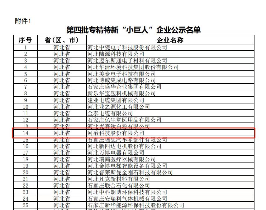 河冶科技股份有限公司獲得國(guó)家級(jí)專精特新“小巨人”認(rèn)定